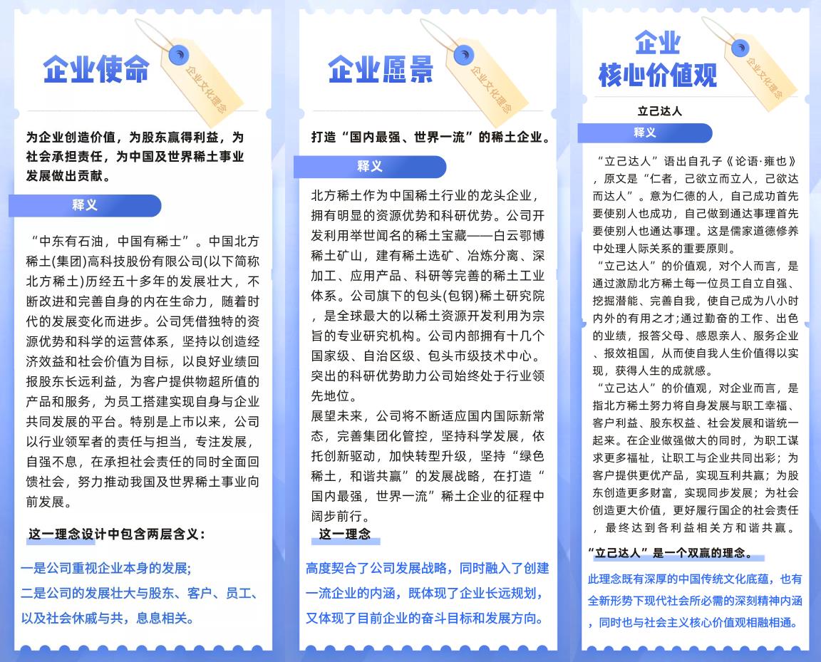 包钢(集团)公司在5 月份开展了第七次“企业文化宣传活动月”。九游中国有限公司官网清美公司以此次“企业文化宣传活动月”为契机,通过微信公众号开展北方稀土企业文化理念宣传活动,旨在进一步加强企业文化建设,持续弘扬包钢精神,提高职工归属感,加深职工对企业文化的了解,推动公司企业文化落地,不断增强企业核心竞争力!